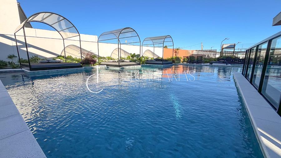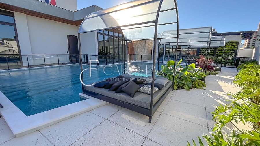 A área de lazer é um verdadeiro refúgio: Beach Tennis, Quadra de Padel, piscinas e espaços planejados para relaxamento e diversão. A arquitetura contemporânea valoriza a integração com a natureza, criando ambientes que promovem bem-estar e sofisticação no dia a dia.